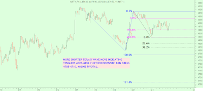 Today I am not going to post any chart as all the levels on either sides are still in tact and that too quite for sometime now. Nifty still could not manage to go above 4885/90 and menacingly not also has broken down the 4835/30 zone discussed earlier .As big B’day is here, will humbly request to trade less/nothing today. Immediate range of the market is still @ 4885/90-4830 and the broader range can be 4960/75 to 4750-4715/10. Traders able to match these levels in each time frame and co-relate them, only should trade, though it’s my personal opinion.